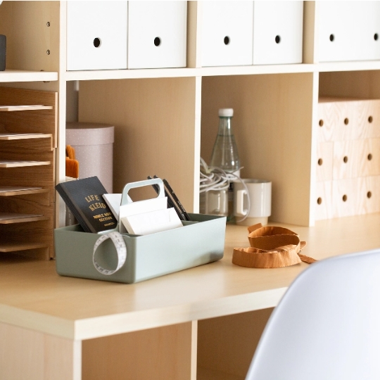 壁面収納OSAMARUをより効率的に使える、コの字型のラックです。コマサイズが横325mmのOSAMARUに入れることが出来ます。本を収納する際の補助グッズとしてご使用ください。
