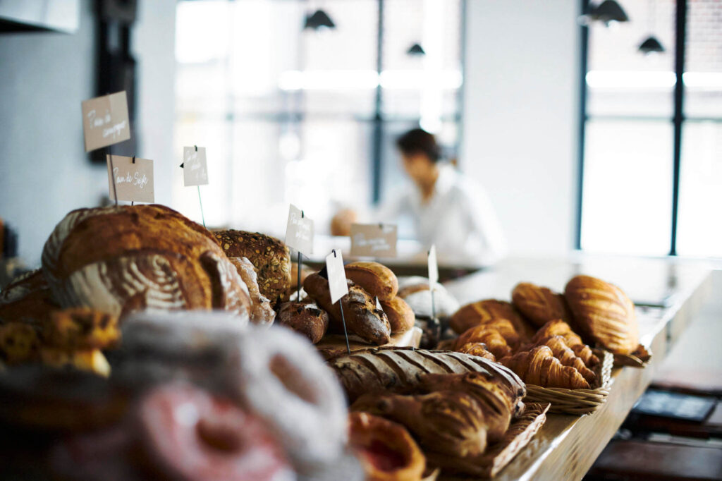 OSAMARUのナチュラルな天然木の質感はパンの素朴な焼き色とマッチして、パンの魅力を引き立てます。クッキーやジャムなどの他の食品も並べれば、食欲をそそるコーナーのできあがり。
